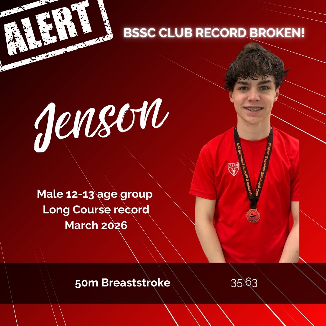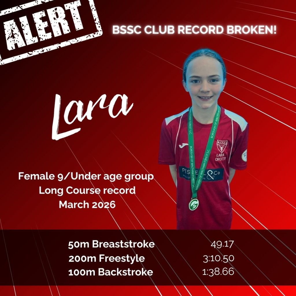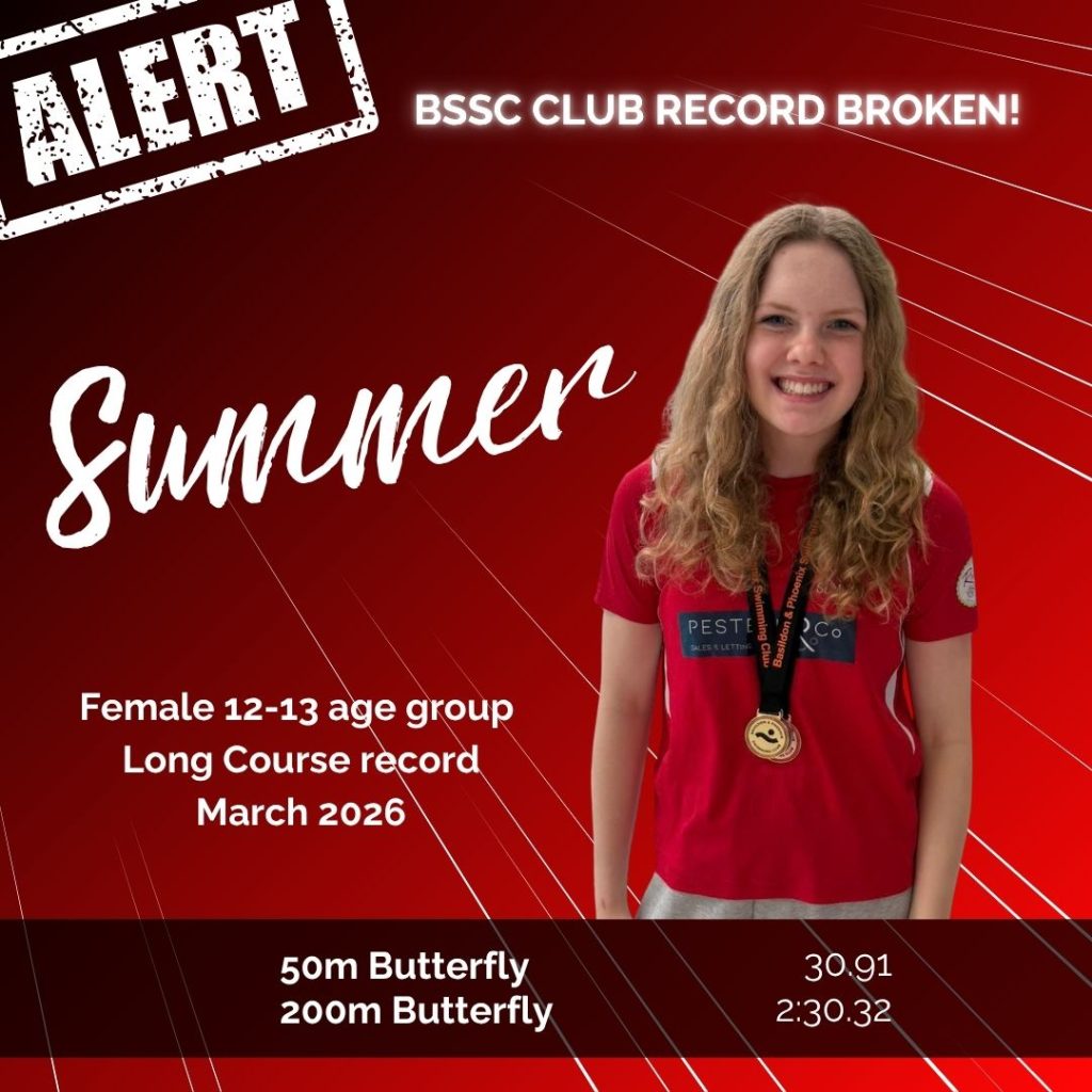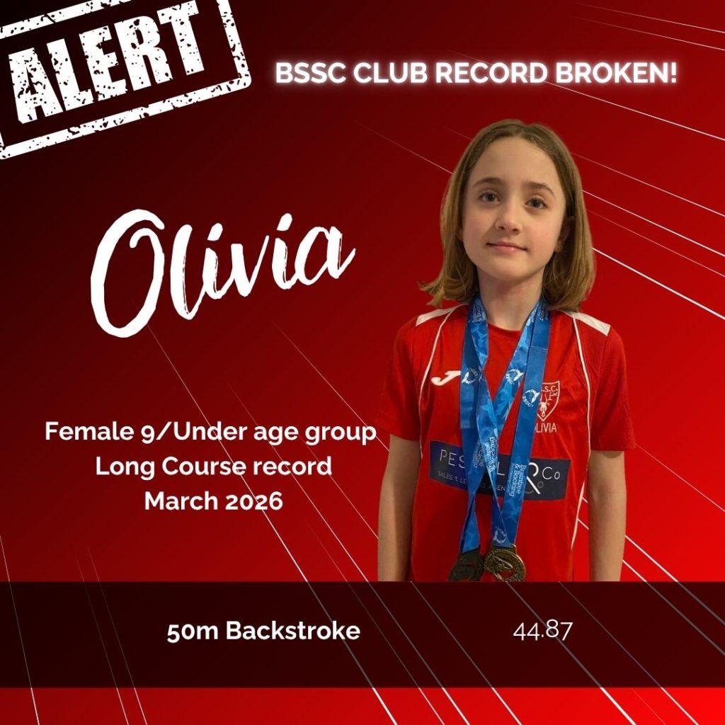 First Long Course records of 2026 broken! Posted on: 21st March 2026 Long course season is off to an amazing start, with 12 new BSSC records broken. Congratulations to Lara, Olivia, Archer, Jeremy, Jenson, Summer and Edie.